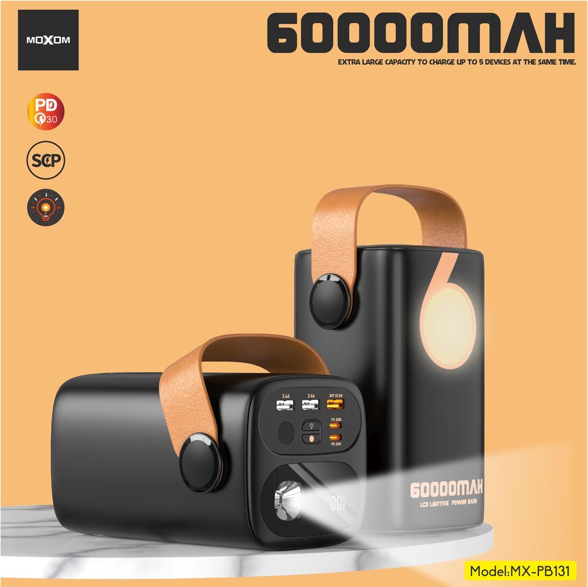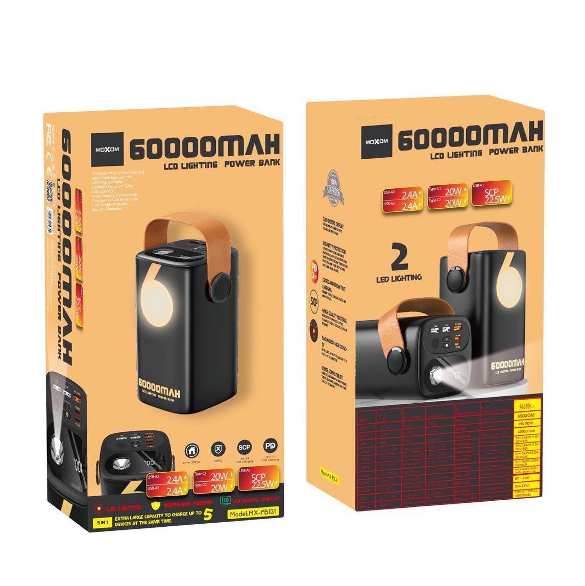 Powerbank MOXOM MX-PB131 SCP & PD 22,5 W, charge rapide, avec lampe torche LED et affichage numérique